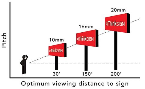Since we now understand the difference that pixel pitch offers we need to put this into consideration for the distance of your sign, if you're looking to put your sign 200 feet in the air or 200 feet away from the viewer a 20mm pixel pitch would work just as good without the need of a 10mm sign.